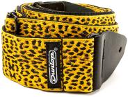 Kytarový popruh s výrazným leopardím vzorem, materiál: vysoce kvalitní jacquardová tkanina, konce: pravá kůže pro bezpečné uchycení nástroje