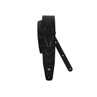 Kytarový řemen, široký 3,5”, vyroben z měkké italské anilinové kůže, podkladovou vrstvou z amerického semiše a ozdobným ocelovým knoflíkem, délka: min. 45” / max. 59”, barva: černá