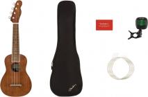 Henry’s MEDIUM Ukulele Full pack obsahuje nástroj střední třídy ze sapele, skládací stojan, popruh, struny, ladičku, trsátka, pilníčky na nehty, vak a havajský věnec