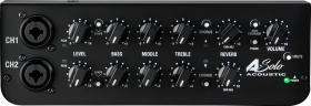 Kombo pro akustickou kytaru a zpěv - výkon: 60 W, reproduktor: 1x 8”, 2 identické kanály pro nástroj nebo mikrofon, sluchátkový výstup, pomocný vstup AUX pro připojení MP3, efektová smyčka, výstup pro nožní ovladač