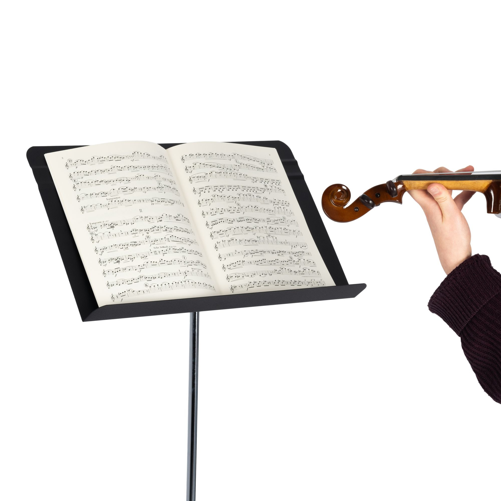 Stojan na noty, nastavitelná výška: 63 - 135 cm, rozměr desky: 490 x 340 mm, hmotnost: 4,15 kg, součástí nylonové pouzdro, barva: černá