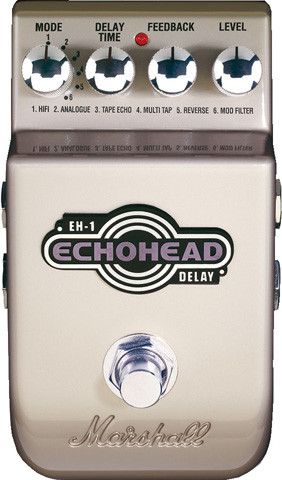 Od křišťálově jasné ozvěny přes hypnoticky reverzní zpoždění po vintage bzučení retro pásku se Echohead promění v šesti různých druhů echa. S EH1 dosáhnete maximálního zpoždění 2000ms (ano, 2 vteřiny!), navíc disponuje stereo výstupy a vstupem pro tap pedál. Duální výstupy nabízí možnost využít pasivní přemostění hlavního signálu, aby bylo zajištěno úplné celistvosti, nebo přelití, které umožní vaší ozvěně přirozeně doznívat.