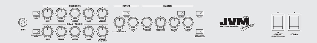 Marshall lampové kombo 215C, výkon: 50W, reproduktor: 1x 12“ Celestion G12, lampy: 5x ECC83, 2x EL34, počet kanálů: 2, počet módů: 6, digitální reverb, footswitch součástí, hmotnost: 26,5 kg