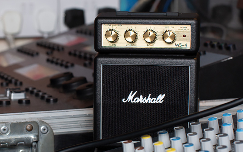 Kytarový zesilovač s bateriovým napájením, výkon: 2 W, osazení: 2x 2", 1 kanál, ovladače: Gain, Volume, Tone, Sluchátkový výstup (1/4" jack)