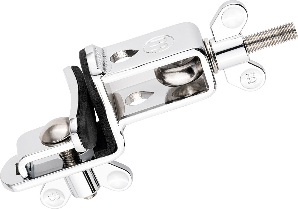 Držák na kravský znovec pro basový buben, materiál: ocel, robustní konstrukce, umožňuje přesné polohování cowbellu, pevné uchycení