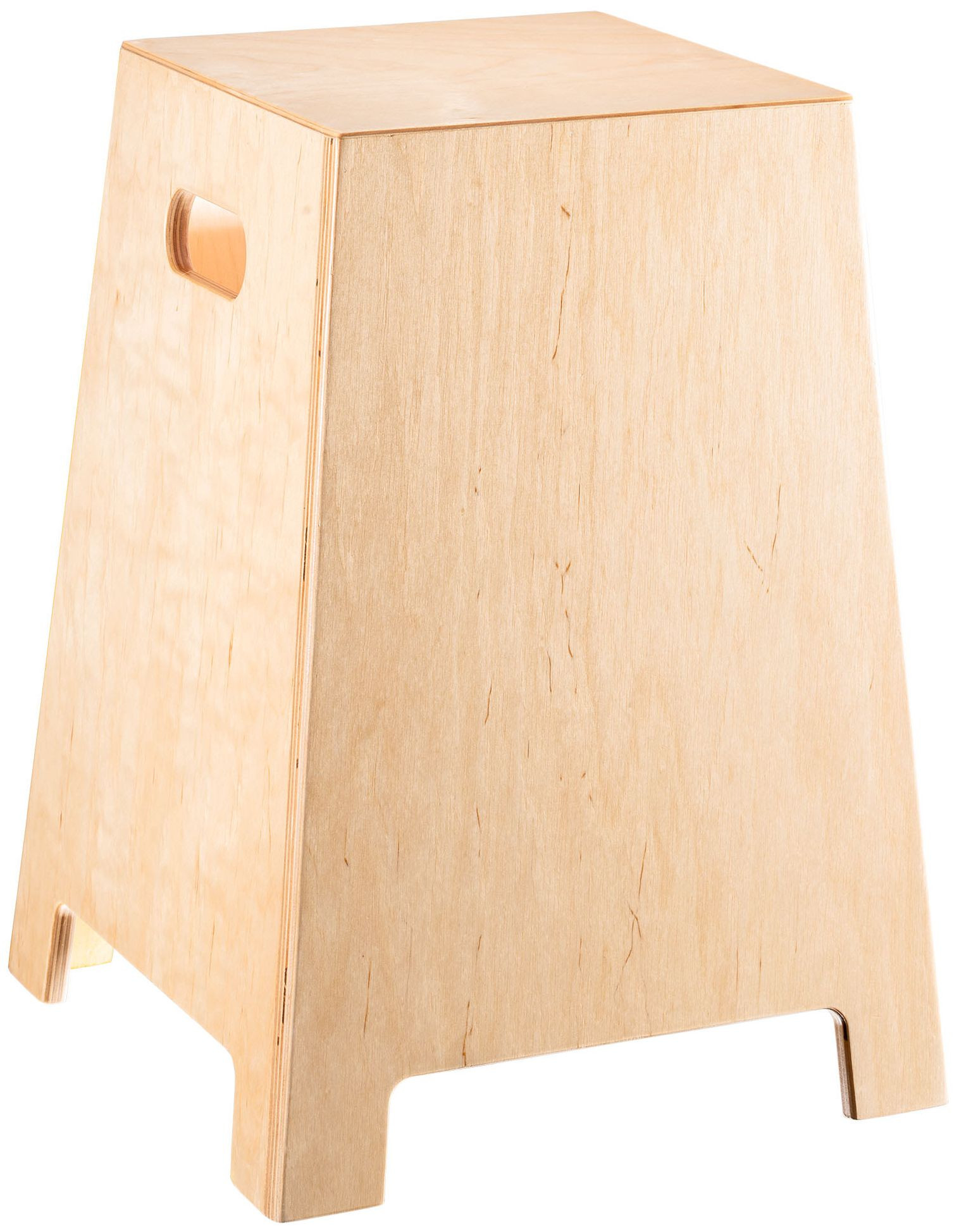 Cajon - tělo: laminát, přední deska: Asiatic Pine, tamburínové plíšky na přední desce, řada: Jingle Cajon, barva: Artisan Wood Grain, popis poškození: na horní desce otlačená "kolečka" od nožek...