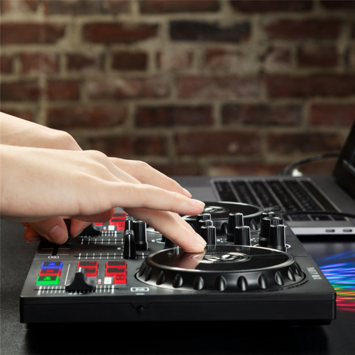 DJ kontroler, 2-kanály, Serato DJ Lite, dotykové jog plotny, osvětlené pady, světelné LED diody, podpora DJ aplikací a streamovacích služeb