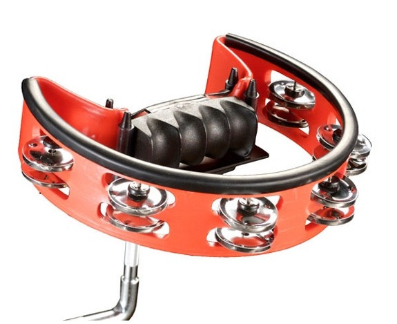 Tamburína - 2 řady ocelových plíšků, materiál rámu: plast, QuickMount holder (pro rychlé uchycení na 3/8" trn), barva: červená