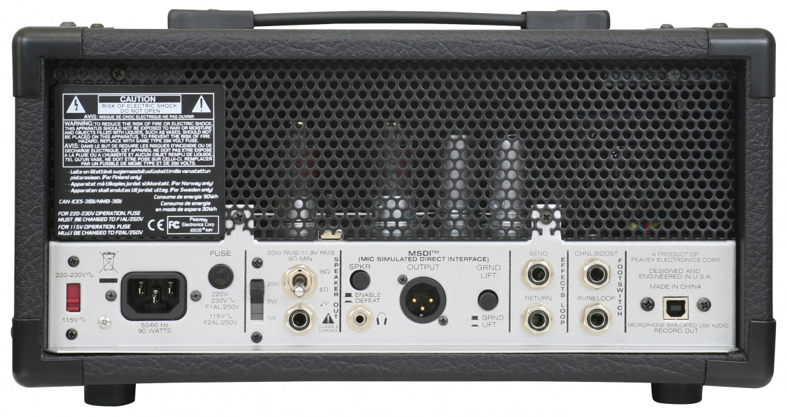 Kytarový lampový zesilovač, výkon: 20 W / 5 W / 1 W, elektronky: 3x 12AX7 + 2x EL84, 2 kanály, 3pásmový ekvalizér, reverb, efektová smyčka, USB, sluchátkový výstup