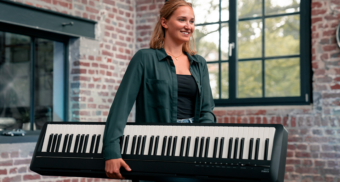 Pokud hledáte přenosnou verzi piana nebo je váš prostor velmi omezený, stage piano je pro vás ideální volbou. Jedná se o nástroj, který může zdánlivě připomínat „obyčejné“ klávesy, ale klaviatura bývá srovnatelná s tou u piana (kvalita se liší dle modelu). Můžete sledovat citlivost na sílu úhozu, vyváženost klaviatury (těžší klávesy v nižších polohách) a další parametry jako je hmotnost, množství funkcí a další.