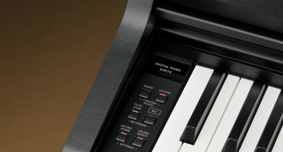 Elegantní model KDP75 obsahuje také řadu praktických digitálních funkcí. Výběr různých hlasů nástroje, vestavěné skladby pro výuku, možnost nahrávání a přehrávání vlastní hry jsou jen některé z mnoha funkcí přístupných v diskrétně umístěném ovládacím panelu. Funkce USB-MIDI pak umožňuje snadné připojení nástroje k počítači a dalším zařízením.