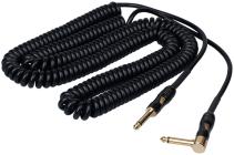 Spirálový kytarový kabel Henry's Hello, robustní konstrukce, pozlacené 6,3mm TS konektory (6,3mm rovný TS konektor, 6,3mm úhlový TS konektor), délka: 9m, barva: černá