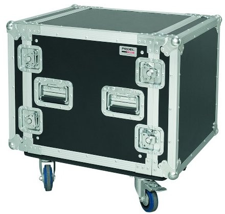 Rackový case, velikost: 10U, 5-vrstvá překližka - tloušťka 9mm, kolečka, 2 s brzdou