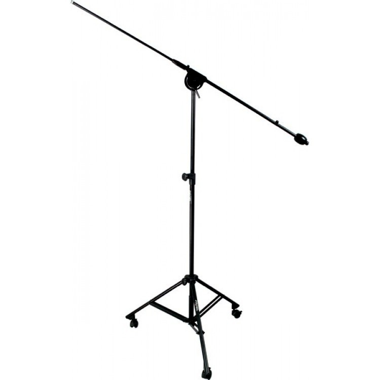 Profesionální vysoký mikrofonní stojan s otočnými kolečky a brzdou, Minimální výška: 1510 mm, Maximální výška: 2400 mm, Hmotnost: 12 kg, barva: černá