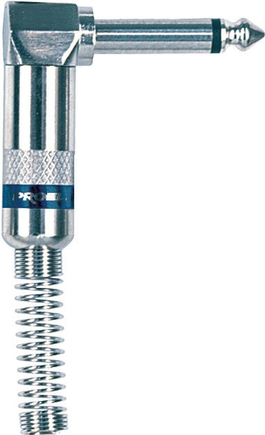 Dvoupólový úhlový konektor mono Jack 6,3 mm - samec pro montáž na kabel, stříbrné kovové pouzdro, pájecí