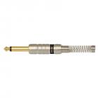 Dvoupólový konektor mono Jack 6,3 mm - samec pro montáž na kabel, stříbrné kovové pouzdro s černým kroužkem, pájecí