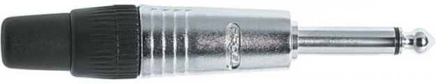 Dvoupólový konektor mono Jack 6,3 mm - samec pro montáž na kabel, stříbrné kovové pouzdro s černým kroužkem, pájecí