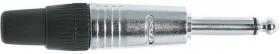 Dvoupólový Jack 6,3 mm TS samec pro montáž na kabel, černo-stříbrné kovové pouzdro, pájecí