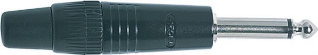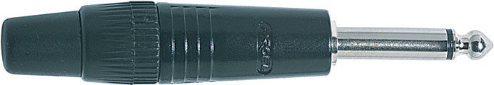 Dvoupólový konektor mono Jack 6,3 mm - samec pro montáž na kabel, černé kovové pouzdro, pájecí