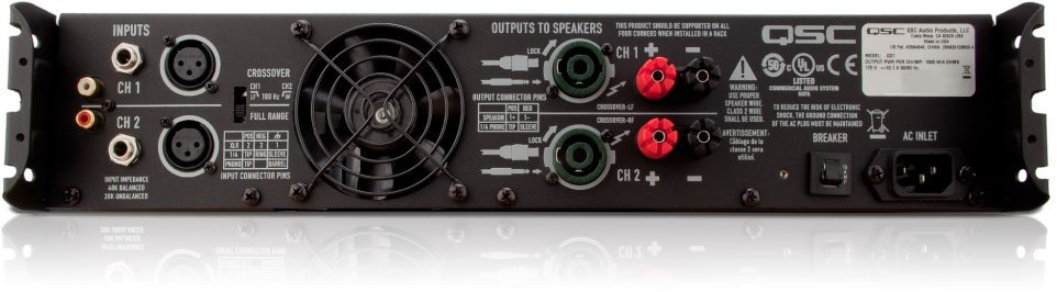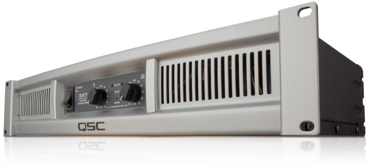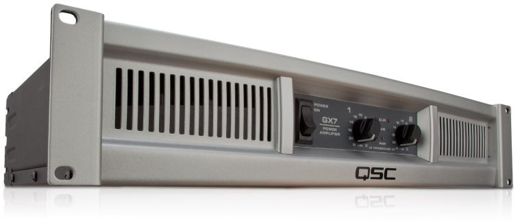 QSC GX7 - Koncový zesilovač 2x725 W při 8 Ohmech 2x1000 W při 4 Ohmech vstupy XLR Jack a RCA výstupy Speakon a svorky indikace zapnutí přebuzení a přítomnosti signálu ochrana GuardRail™