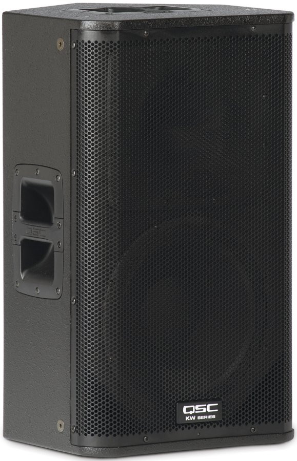 QSC KW122 • Aktivní dvoupásmový reprobox řada KW; reproduktory 12“ + 1,75“; bi-amp zesilovač výkon 500+500W RMS; třída D; DSP jednotka; maximální SPL 131dB; frekvenční rozsah 53Hz – 18kHz; HF a LF ekvalizér; mikrofonní/linkový XLR vstup; linkový XLR vstup; linkový RCA vstup; linkové XLR výstupy; materiál: březová překližka