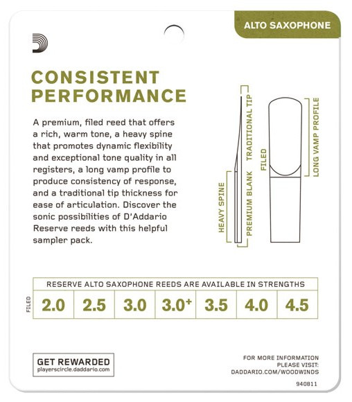 - DRS-J30 Reserve Reed Sampler Pack - Alto Saxophone 3.0/3.0+/3.5 - 4-Pack