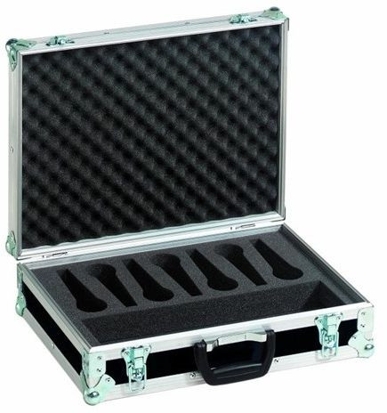 Robustní hliníkový černý case pro bezpečnou přepravu 7 ručních mikrofonů a příslušenství. Speciální polstrování vnitřku case, ochranné kulaté rohy, motýlkový zámek, praktické madlo pro snadné přenášení. Rozměr: 410 x 330 x 135 mm.