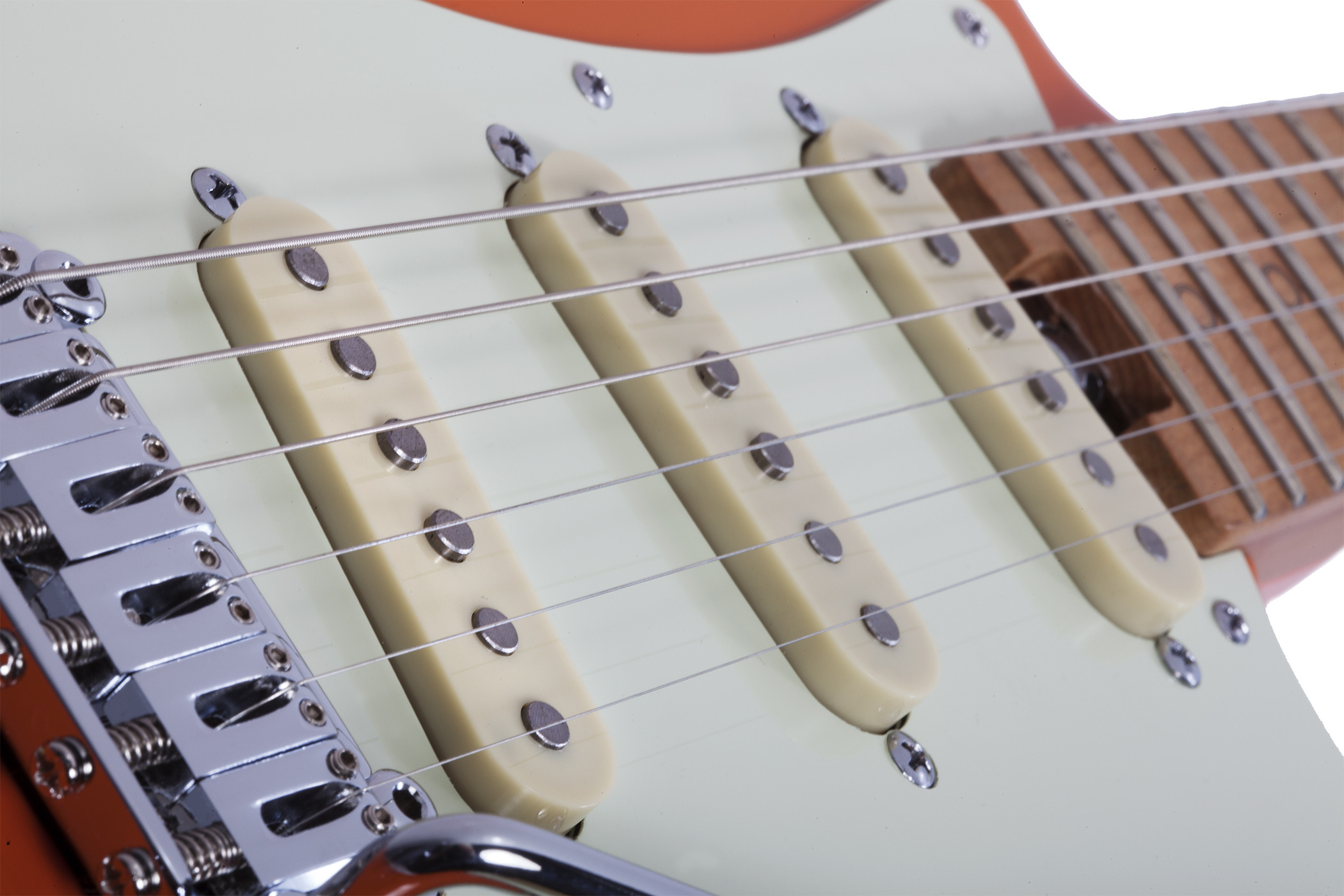 Elektrická kytara - tělo: olše, krk: javor, hmatník: javor, snímače: 3x Schecter Diamond Nick Johnston Single Coil, barva: Atomic Orange