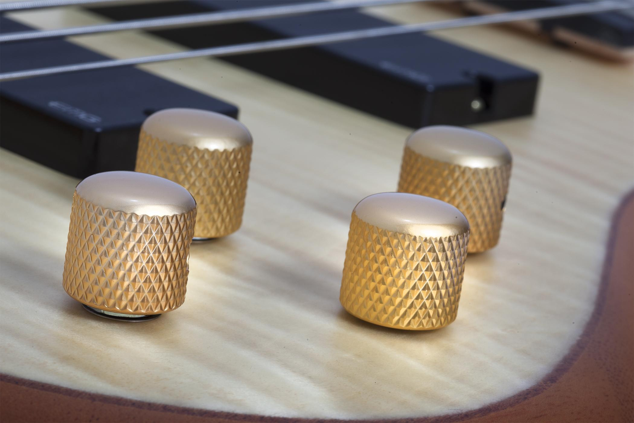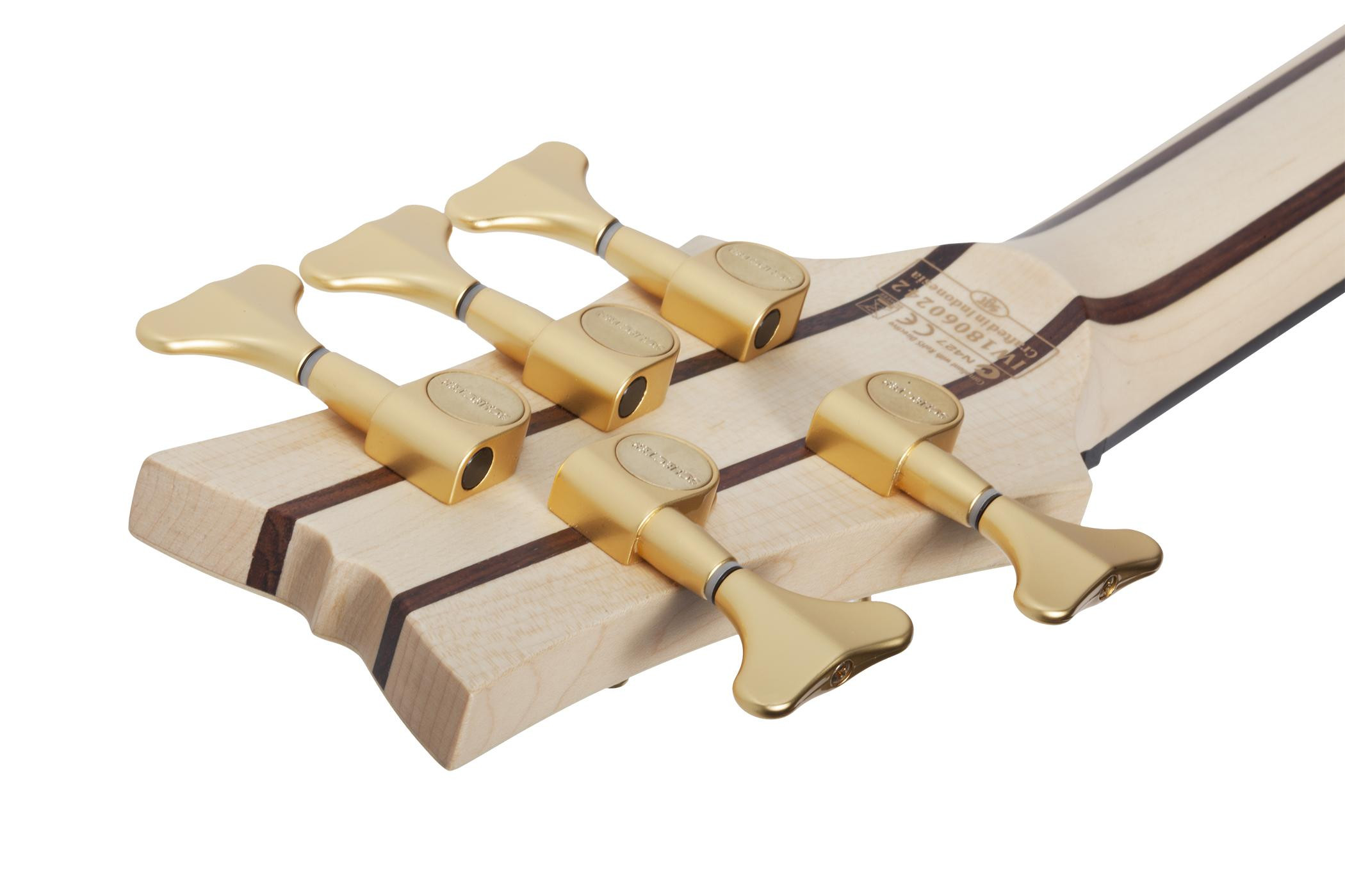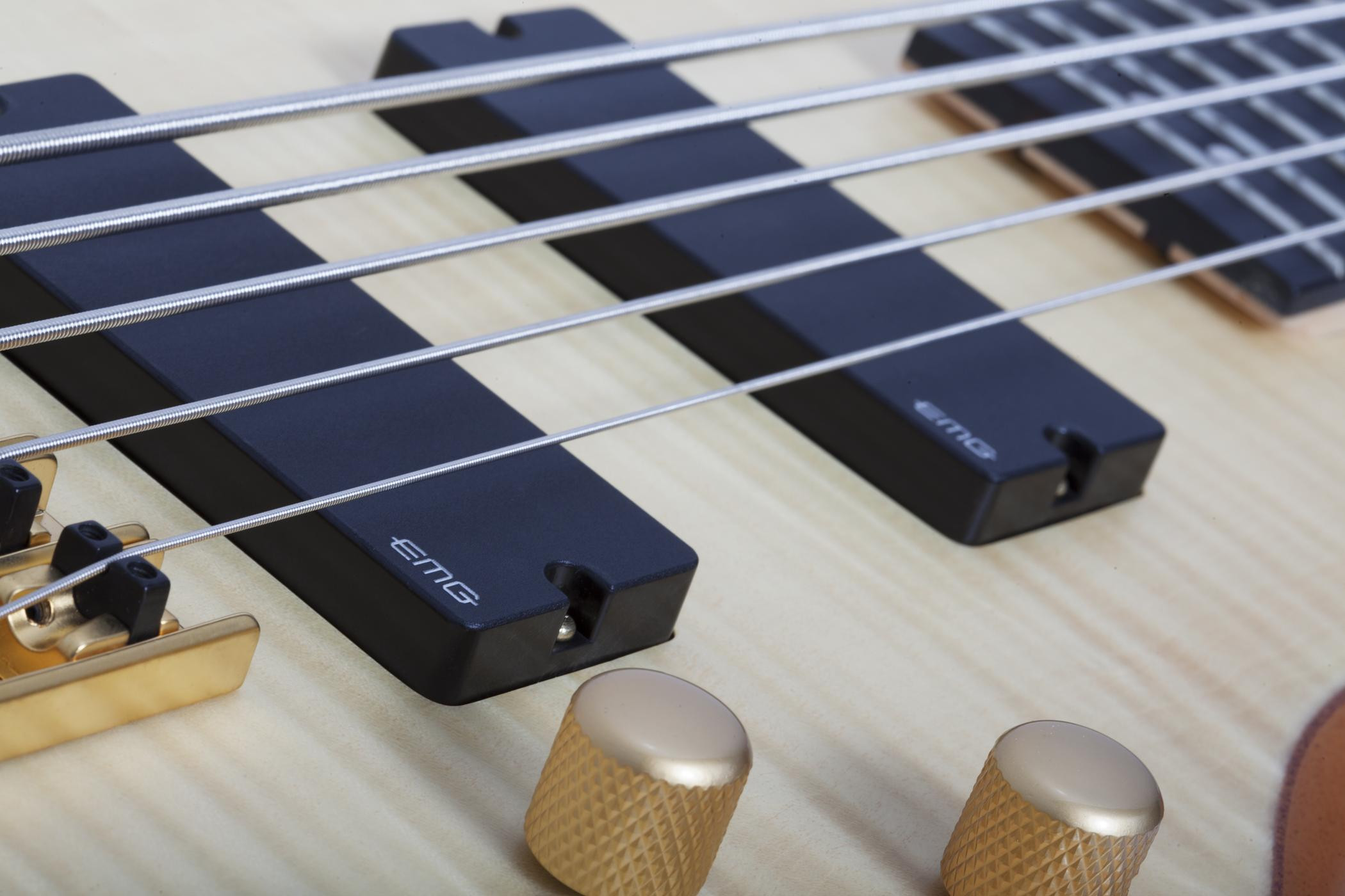 Pětistrunná baskytara, série: Stiletto, tělo: mahagon, top: žíhaný javor, krk: laminovaný javor/ořech, hmatník: palisandr, snímače: 2x EMG 40HZ, prodloužená menzura, barva: Natural Satin