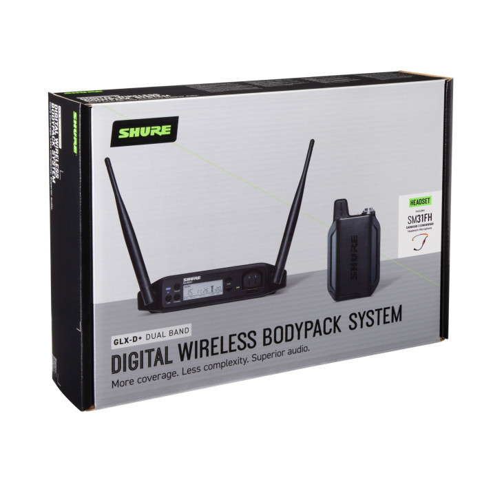 Bezdrátový systém s hlavovým mikrofonem SM31, řada GLXD+, pracovní frekvence: 2,4 a 5,8 GHz