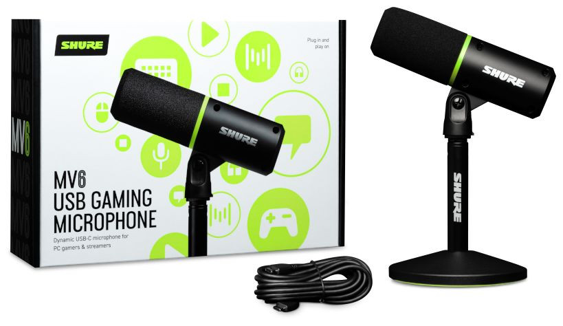 USB-C dynamický mikrofon pro hráče, podcastery a streamery, charakteristika: kardioida, A/D převodník: 16 nebo 24 bitů, 44,1 / 48 kHz, frekvenční rozsah: 50 Hz to 15,000 Hz, 128 dB SPL, DSP: Auto-Level Mode, Digital Popper Stopper, Real-time Denoiser, Tone Slider, High-Pass Filter, sluchátkový výstup, obsah balení: 1x mikrofon MV6, 1x 1m USB-C - USB-C kabel, 1x 12cm stolní stojánek