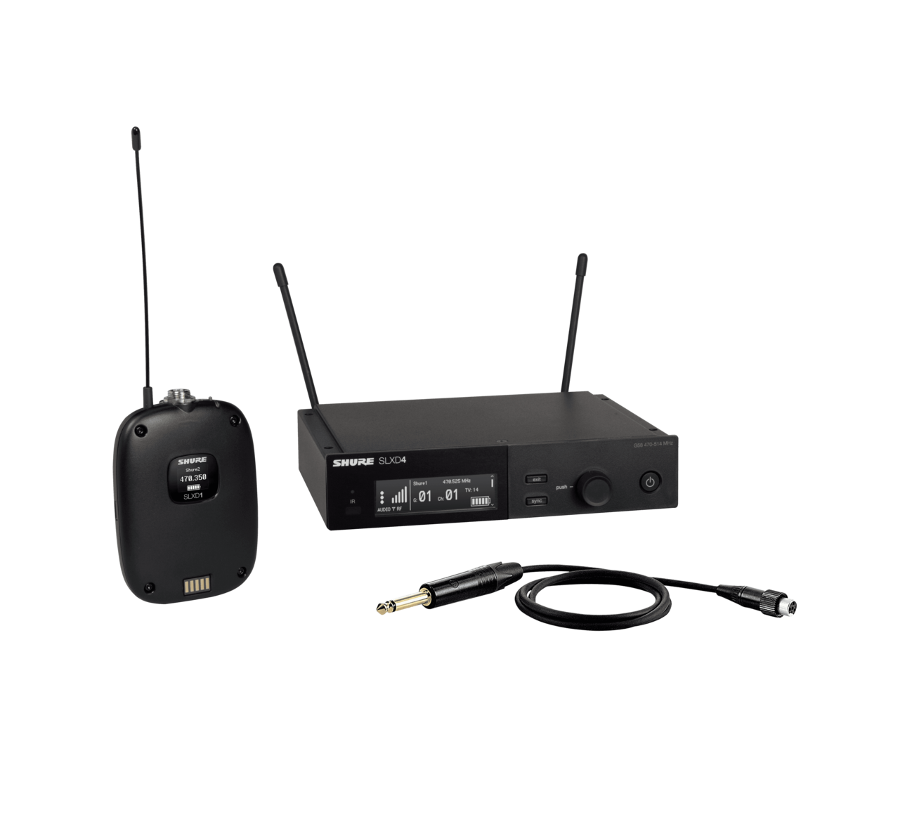 Bezdrátový systém SLXD s vysílačem Bodypack SLXD1 a nástrojovým kabelem WA305, pracovní frekvence: 470-514 MHz