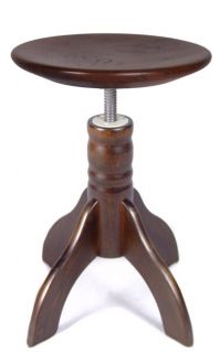 Klavírní židle, kulatá točící, 3 nohy, nastavení výšky: 45 - 62 cm, celodřevěná, barva: mahagon Vyrobeno v ČR!