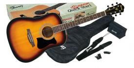 Set akustické kytary s příslušenstvím - tvar: dreadnought, top: smrk, zadní deska a luby: mahagon, krk: mahagon, hmatník: purpleheart, barva: Sunburst, příslušenství: gig bag, řemen, ladička,...