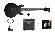 Set elektrické kytary s příslušenstvím - tělo: javor, krk: javor, hmatník: HPL, snímač: Piezo Pickup, barva: Black, příslušenství: gig bag, kytarový pás, ladička, sluchátka