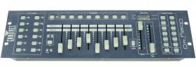Světelný pult, 1024 DMX kanálů, možnost ovládat 96 zařízení, 7" dotykový displej, přednastavené knihovny pro různá zařízení, automatické efekty, DMX výstupy
