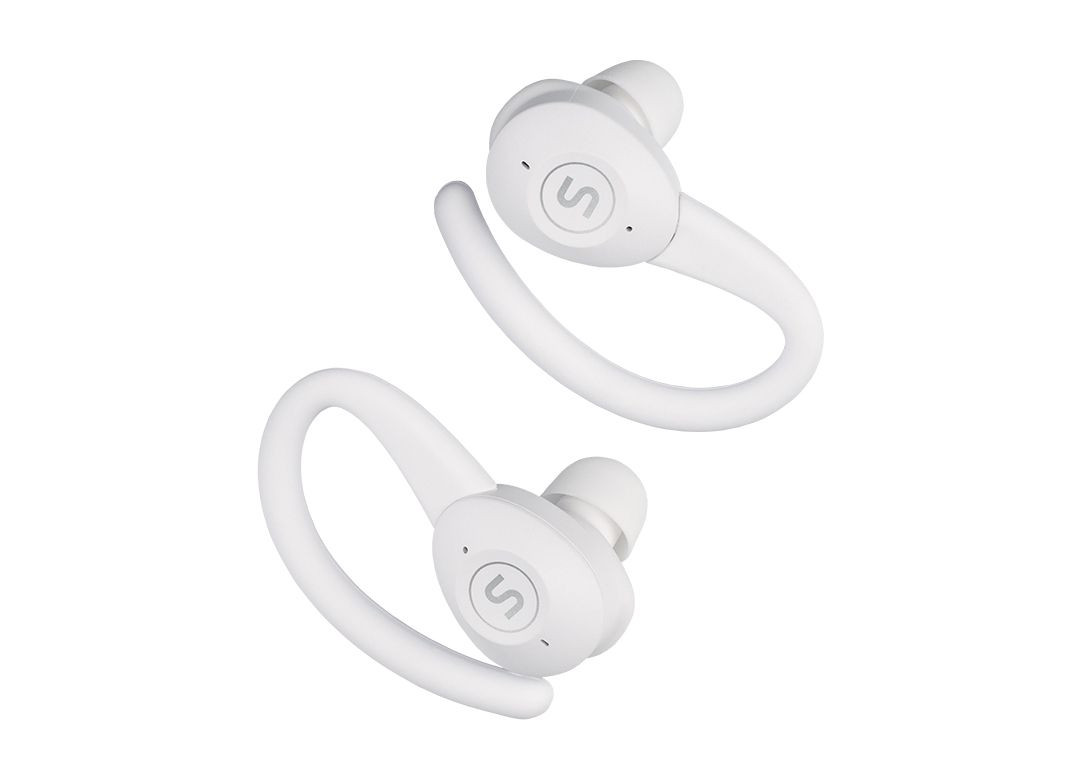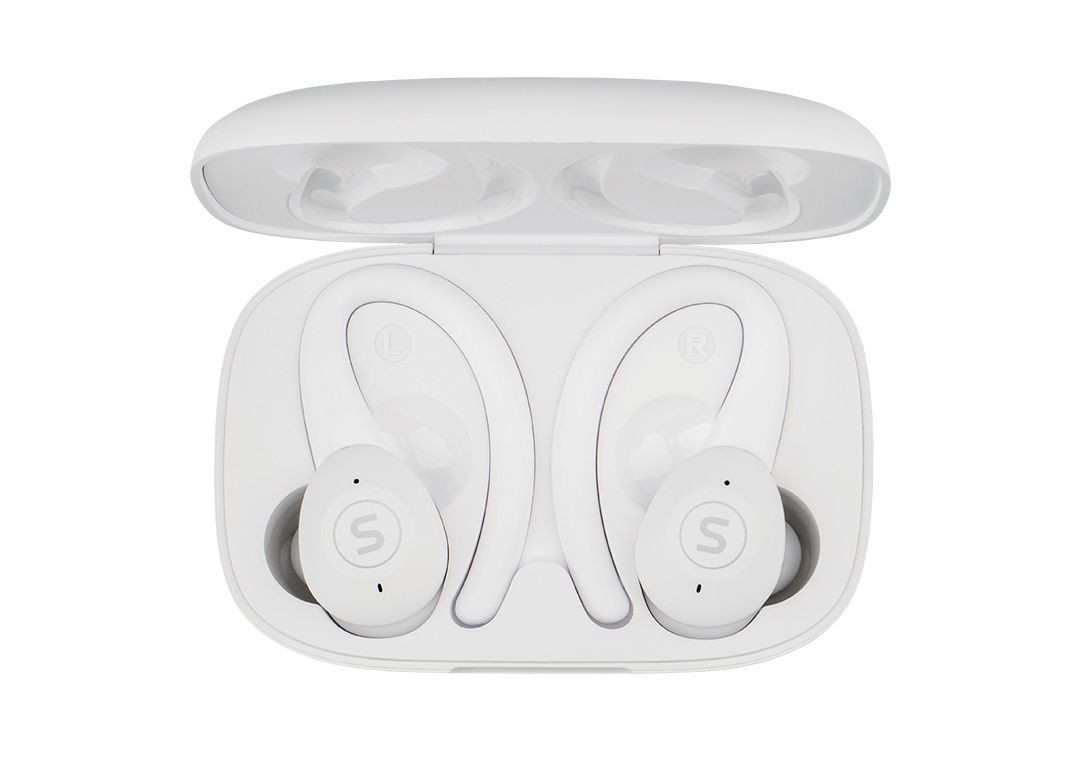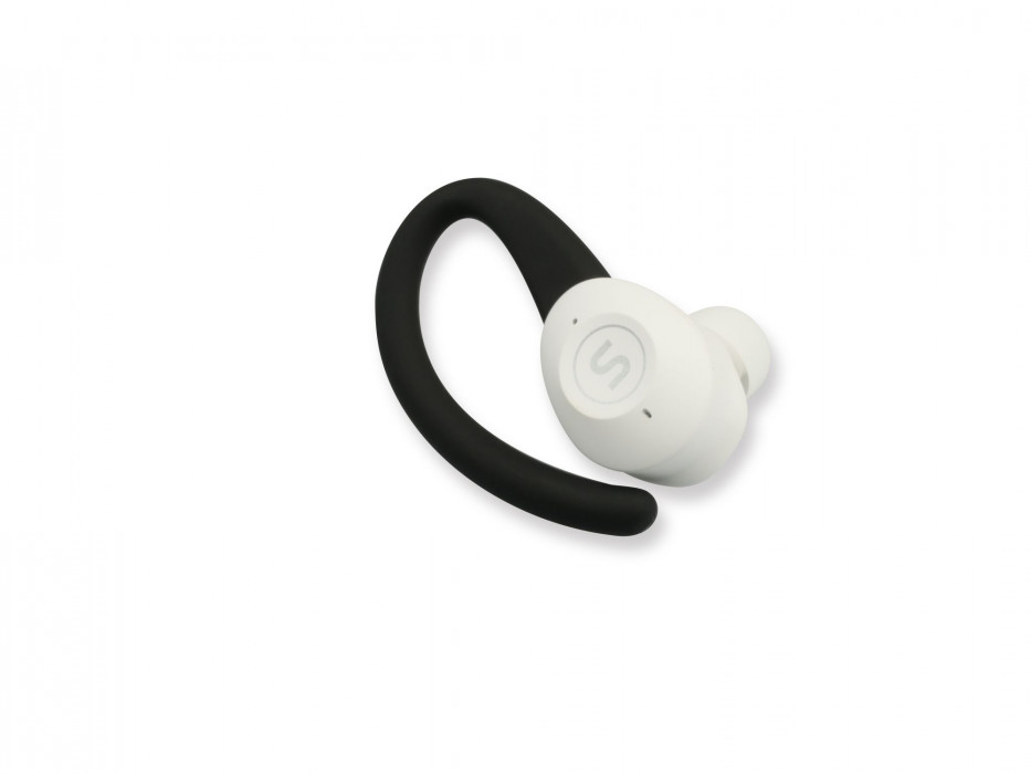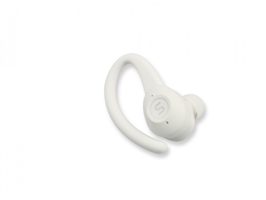Bezdrátová sluchátka s mikrofonem, True Wireless špunty do uší, uzavřená konstrukce, odnímatelné magnetické držáky za ucho - 3 barevné páry, Bluetooth 5.0, přijímání hovorů, ovládání hlasitosti, přepínání skladeb, hlasový asistent, 2 zvukové profily, Ambient mód, nízká latence, certifikace IPX7, frekvenční rozsah 20 Hz-20000 Hz, bezdrátové dobíjení, výdrž baterie až 36 h (6 h+30 h), barva: bílá