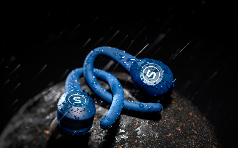 Sportovní bezdrátová sluchátka do uší, latence: jen 60ms, výdrž baterie 6h / s pouzdrem 30h, odnímatelné magnetické držáky za ucho, 2 režimy ekvalizace, ovládání dotykem, dobíjecí pouzdro podporuje bezdrátové nabíjení, režim Ambient, stupeň krytí: IPX7, hmotnost: 12g
