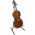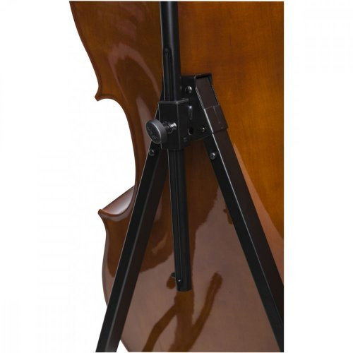 Stojan na violoncello - skládací, s háčkem pro zavěšení smyčce, vhodný pro velikosti violoncell 1/2, 3/4, 7/8 a 4/4, nastavitelná výška: do 117 cm, barva: černá