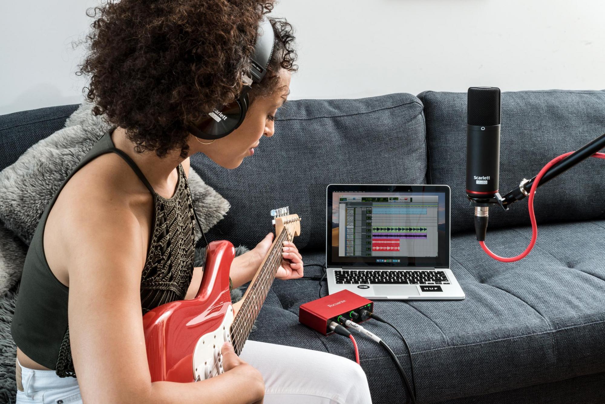Samotný proces nahrávání a jeho výsledky se dají přirovnat k pomyslnému ledovci, na jehož vrcholu je mikrofon. Alespoň ve většině případů. Mikrofony mohou mít celou řadu podob a podle své konstrukce nacházejí různá uplatnění. Zatímco mikrofony dynamické budou platné při snímání silnějšího zdroje signálu, kondenzátorové nechají vyniknout i drobným detailům komorního zpěvu nebo akustických nástrojů. Obě tyto skupiny dále zahrnují zařízení s různými směrovými charakteristikami. Pro začátek ale není nutné zatěžovat se složitým a finančně náročným výběrem několika mikrofonů, vystačíte si s jedním univerzálním, velkomembránovým kondenzátorovým mikrofonem. Takový můžete koupit samostatně nebo v některé z praktických sad se zvukovým rozhraním (kartou). Pokud chcete k nahrávání využívat počítač, bez zvukového rozhraní se ve studiu neobejdete. Toto zařízení má v závislosti na modelu různý počet vstupů a výstupů a pomocí převodníků dokáže průchozí signál upravit do takové podoby, aby s ním dál bylo možné pracovat v DAW softwaru v počítači.