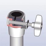 Stojan šibenice - dvojité nohy, systém vyklápění Uni-Lock, plastový wing nut, plastový šroub, spojení tyčí Die-Cast