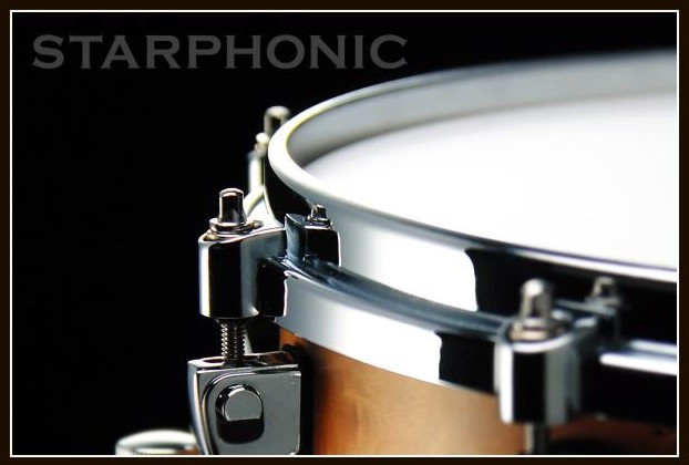 Snare drum, 14" × 6", korpus: hliníková slitina (tloušťky 1,2mm), ráfky: ohýbané Grooved Hoop, napínací šrouby: 10 na straně, citlivé Hi-Carbon strunění, země původu: Japonsko