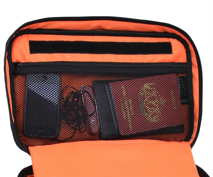 Kufr pojízdný, černá barva/oranžový uvnitř, vnější rozměry: 35.5 x 52 x 28 (cm), vnitřní rozměry: 31 x 39 x 19 (cm), hmotnost: 5,10 kg