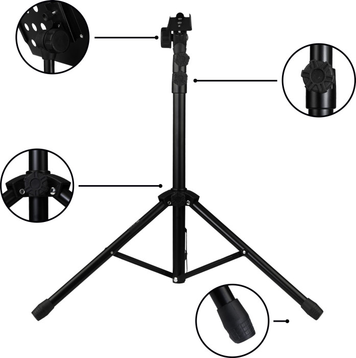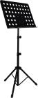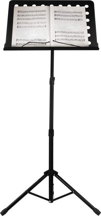 Stojan na noty - skládací, nastavitelná výška: 650 až 1350 mm, nastavitelný sklon opěrné desky, materiál konstrukce: kov/plast, přepravní obal, barva: černá