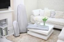 Protiprachová přikrývka pro akustickou kytaru, výška: 110cm, spodní šířka: 65cm, materiál: Polyester Acrilic Coating, barva: černá-stříbrná