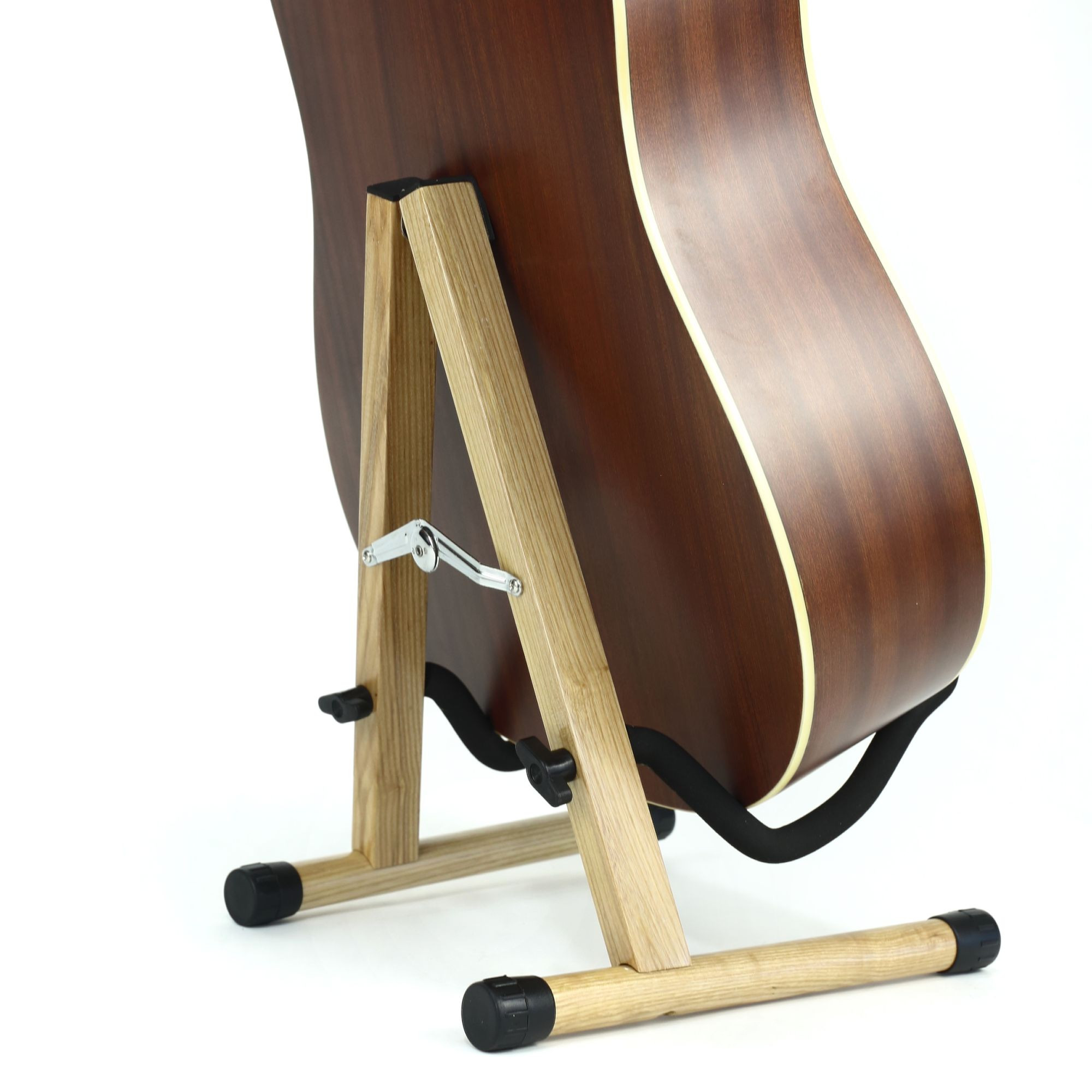 Skládací kytarový stojan na cesty, stage i do studia, velmi lehký, ergonomický tvar, vypolstrované dotykové body, možný náklon stojanu a přizpůsobení nerovným povrchům, barva: černá