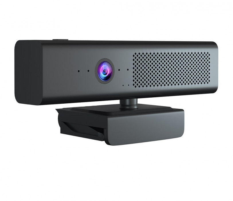 Konferenční HD web kamera (Full HD 1080p, 30fps) s vestavěným reproduktorem, 4 kvalitní všesměrové stereo mikrofony s funkcí potlačení okolního hluku, snímání zvuku ze vzdálenosti 5 až 8m, odstíněný USB kabel