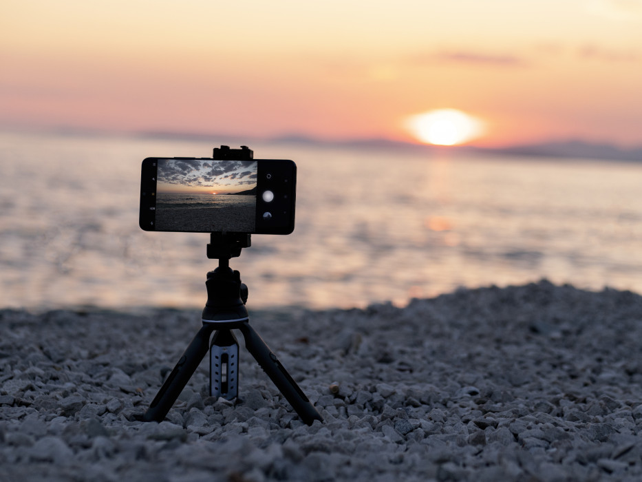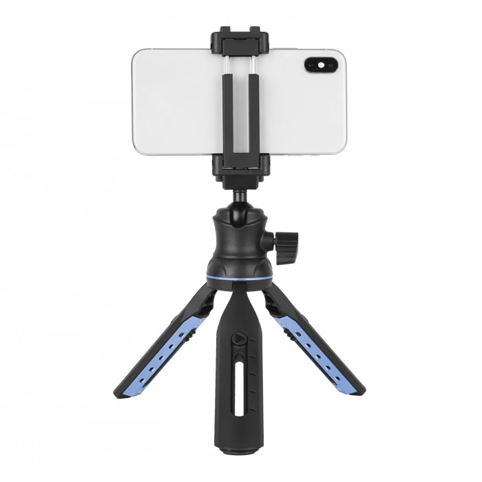 Stativ s teleskopickými nožičkami, polohovatelnou upínací hlavou pro kamery a držákem na mobilní telefon