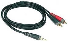 Propojovací kabel, délka 1m, 1x Mini jack plug 3p. - 2x RCA / AY7, 24karátové pozlacené kontakty, barva: černá