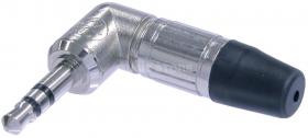 Třípólový stereo Jack 3,5 mm - samec úhlový pro montáž na kabel, pozlacené kontakty, černé kovové pouzdro, pájecí